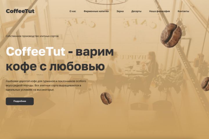 Одностраничный сайт для кофейни, специализирующейся на элитных сортах кофе