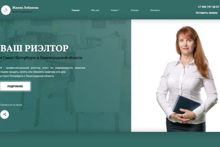 Лендинг для частного риэлтора, оказывающего профессиональную помощь и поддержку при осуществлении сделок с недвижимостью