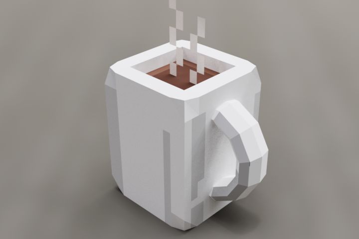 Пример моей работы в виде малополигогальной кружки. На фотокарточке также имеется рендер который я изучаю