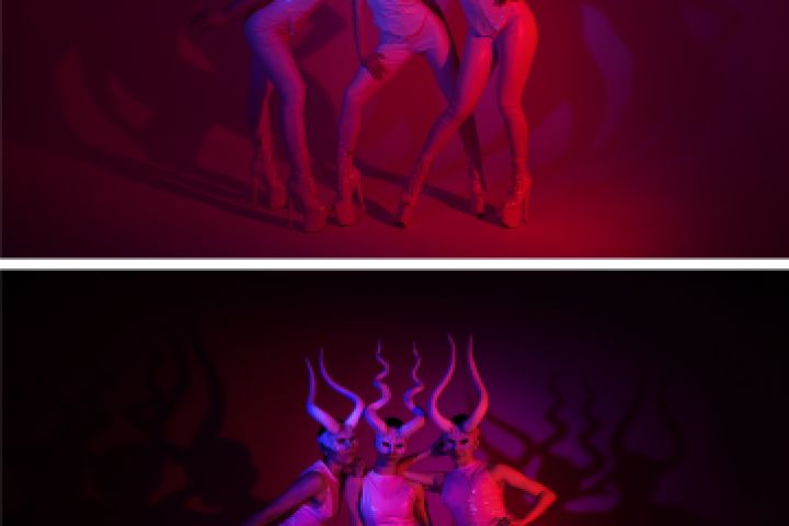 Требование к обработке были следующими: провести цветокоррекцию, затемнить фон и усилить контраст, сохранить и усилить цветовую составляющую без потери детализации. Ретушь в данной фотографии заключается в разглаживании лишних складок, бликов и мусора на циклораме.