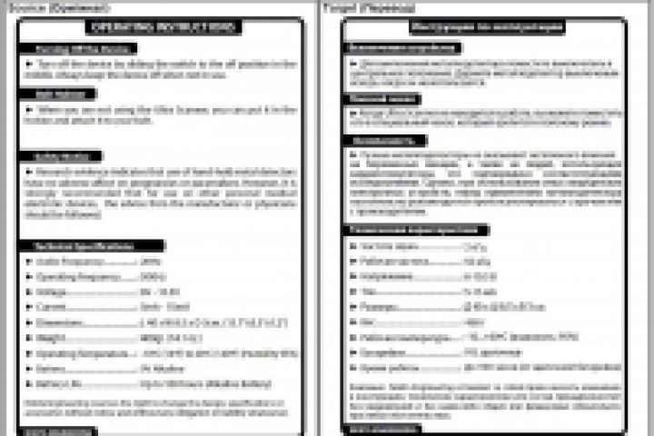 Фрагмент перевода руководства по эксплуатации досмотрового металлодетектора, применяемого в службах безопасности. Перевод и верстка текста с сохранением исходного макета.