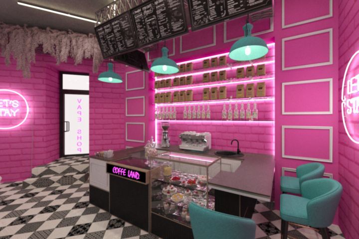 Дизайн проект кофейни уже существующего помещения с учётом соседства магазина
