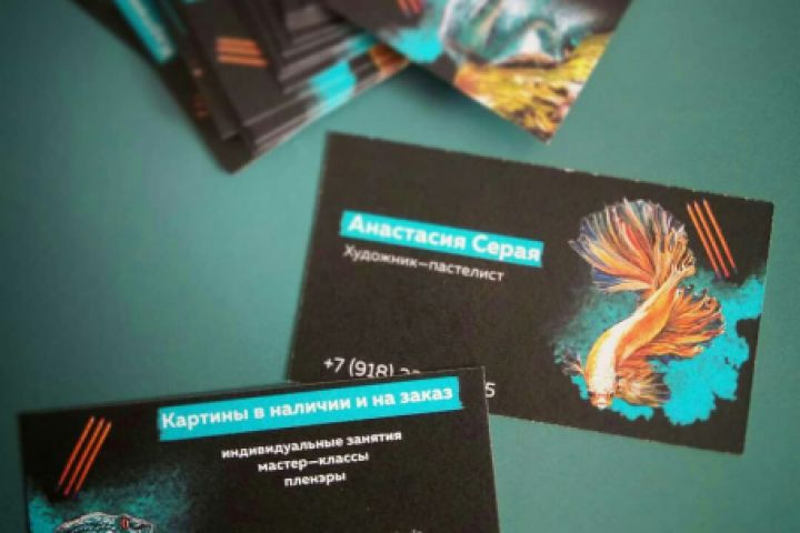 Задачей дизайна была передача стиля художника на визитку.