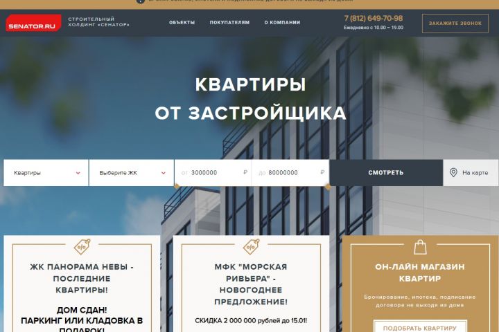 Разработка и техническая поддержка сайта строительной компании Сенатор