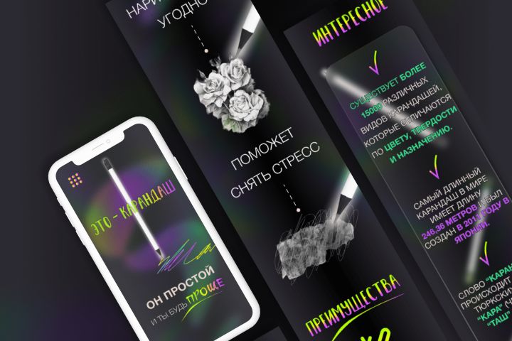 Креативный сайт-визитка для карандаша.Адаптирован для смартфона