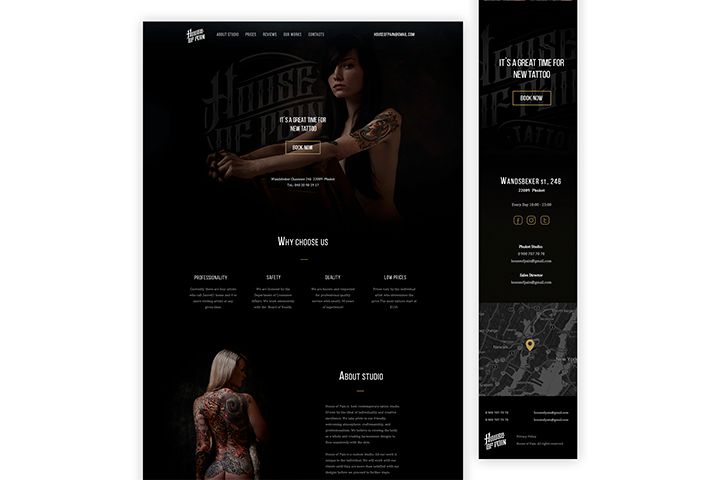Представляем один из самых креативных проектов – сайт для студии тату «House of Pain», в переводе на русский «Дом Боли». Брутальный стиль и неформальная атмосфера сайта завораживают.