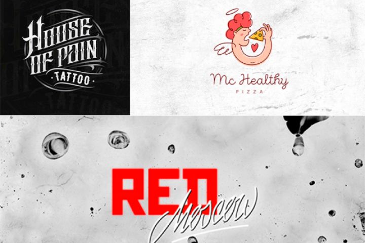 Логотипы в стиле леттеринг для пиццерии, ночного клуба и тату