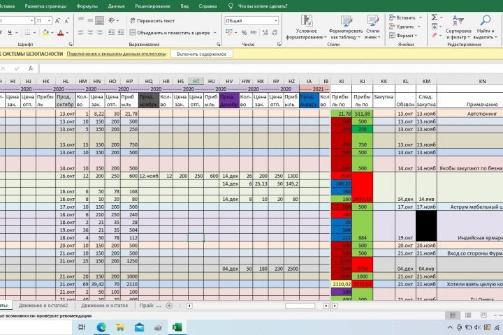 - заполнение данных о закупках, продажах