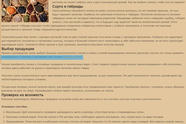 "поэтому его лучше доверить специалистам и покупать и доставлять уже готовые семена почтой".