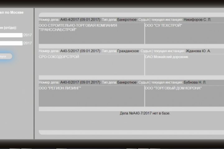 Сбор данных с картотеки, для судебных дел по Москве, в нужном диапазоне
