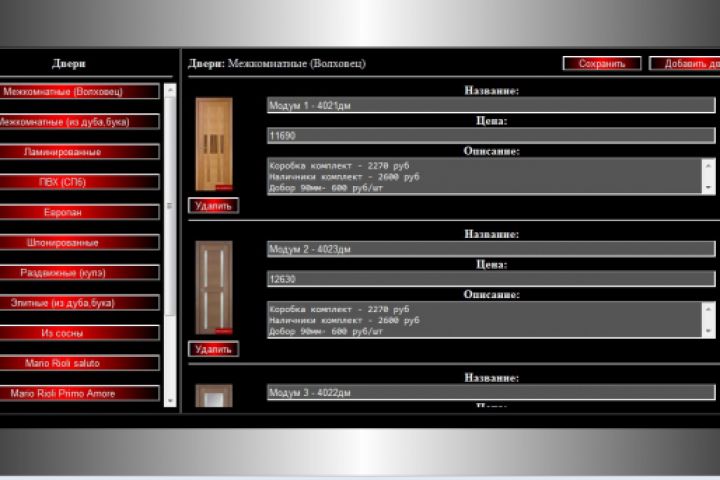 Админка для сайта по продаже дверей