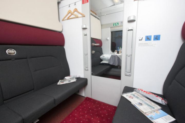 2. В вагоне Люкс – двухместные купе, с верхней и нижней полкой, душ, туалет, электророзетки, видео-проигрыватель, халаты и наборы для душа, автономный кондиционер. Отдельные места не продаются, только купе целиком.