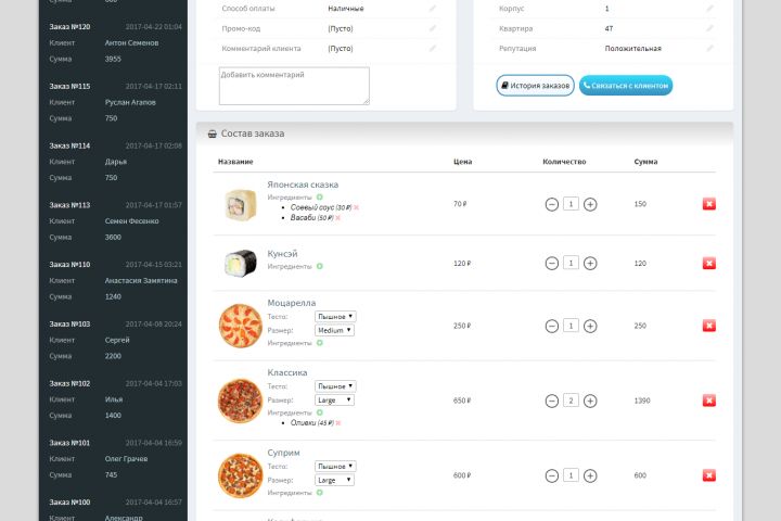 Панель оператора для CMS FoodMajor