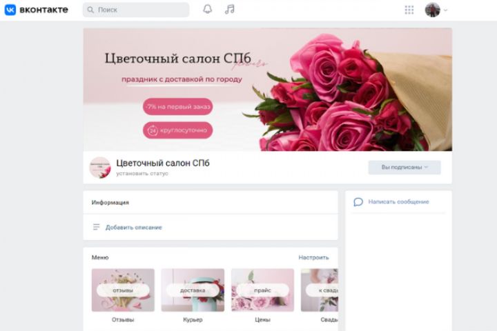 Оформление группы для Цветочного магазина СПб. Полное визуальное оформление сообщества.