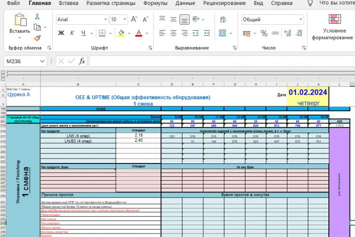 Ежесменные отчеты с расчетом KPI (ОЕЕ, Аптайм, производительность, качество, доступность)