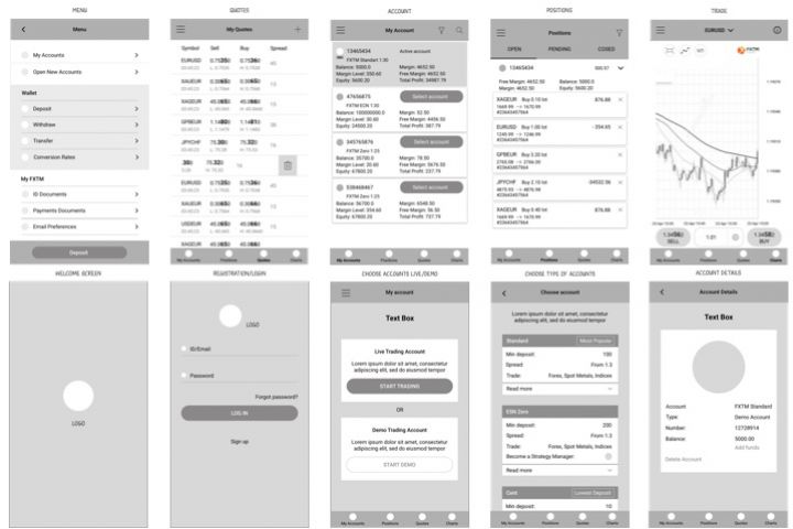 Прототип для приложения FXTM TRADE Приложение для торговле на Форекс