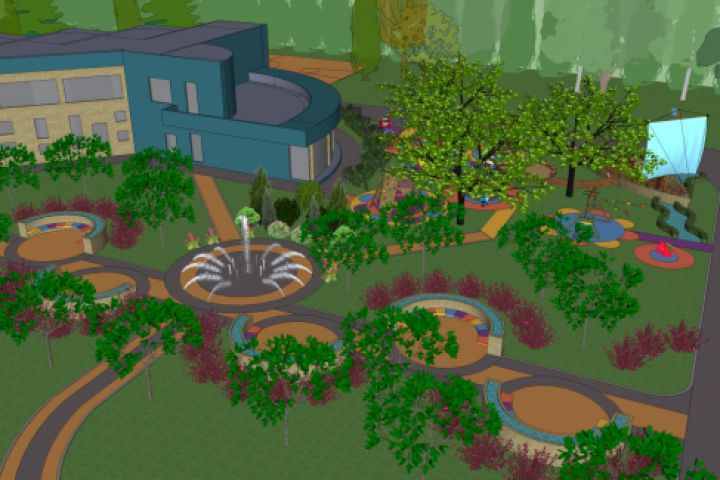 Проект благоустройства территории Центра реабилитации для детей с ДЦП благотворительный. Уникальный по своей сути объект безбарьерной среды позволил в рамках тех.задания, бюджета инвесторов и с учётом всех норм и требований создать одинаково доступное пространство как для здоровых детей, так и для ребят с ограниченными возможностями различной степени. Музыкальный фонтан, приподнятые клумбы, игровая площадка, включающая корабль, который используется и в качестве мини-сцены под открытым небом, тропа здоровья, состав и структура посадок, а так же цвета покрытий - всё предполагает комфортное и интересное времяпровождение, располагает к общению, физическому и умственному диалогу между людьми и природой. Проект на стадии реализации.