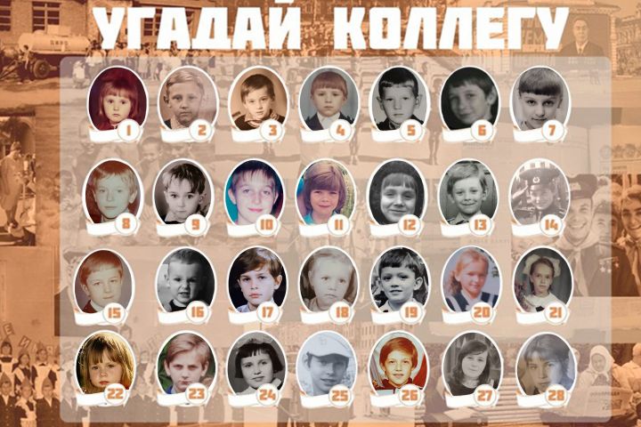 Замысел этой работы был в том, чтобы подарить такой плакат коллективу моих родителей на работе. На нём изображены все коллеги, только в свои детские годы!
