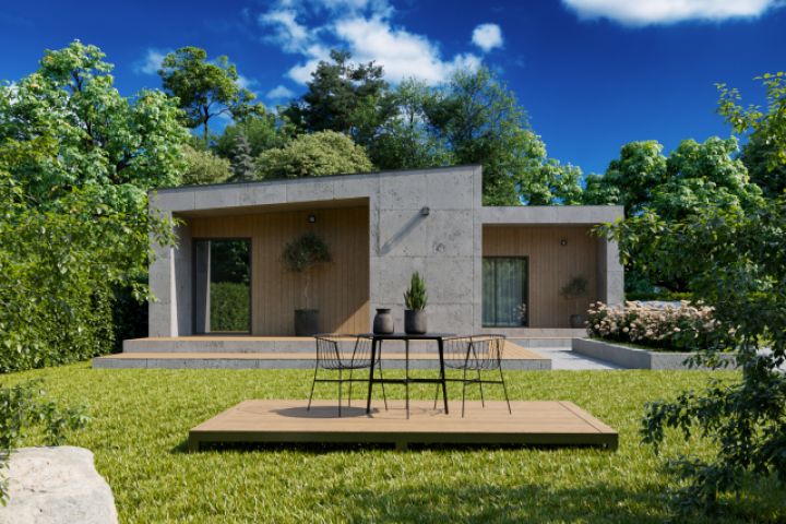 Визуализация концепта небольшого бетонного дома для стартапа Next V