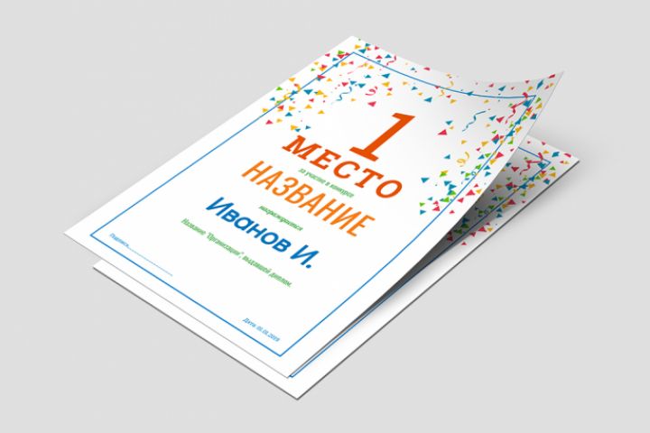 Образец диплома, грамоты за первое место