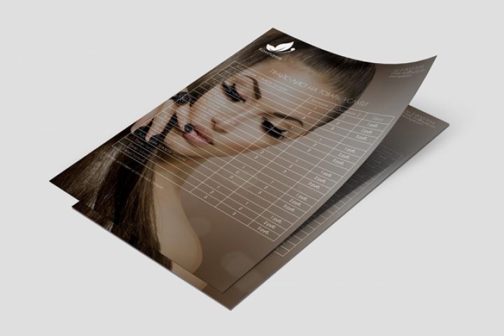 Образец прайс-листа салона красоты, наращивание ресниц