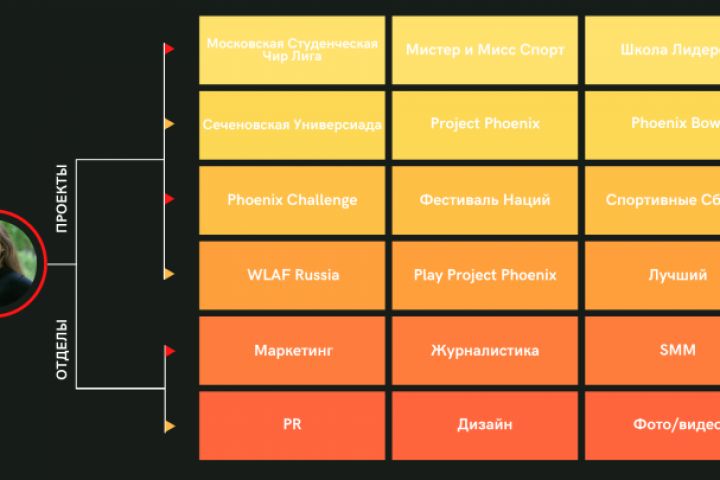 Инфографика с устройством руководства, выполнена в фирменных цветах бренда.