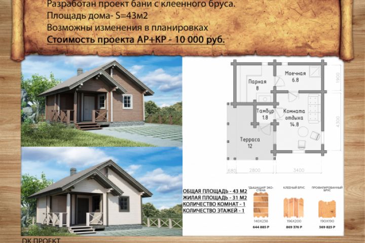Баня с профилированного бруса 43 м2