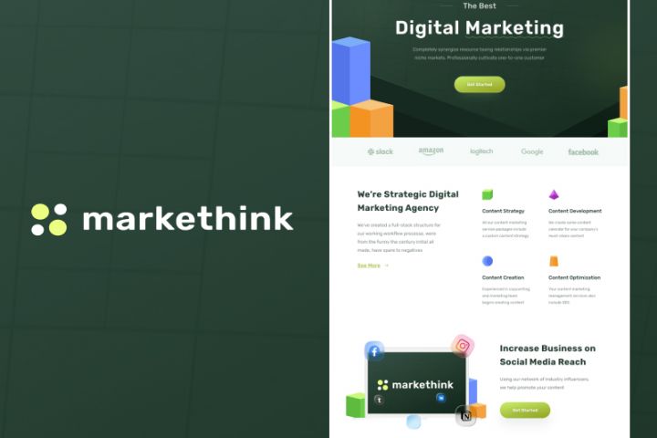 Сайт маркетингового агенства Markethink. На разработку этого сайта было потрачено 15 часов.