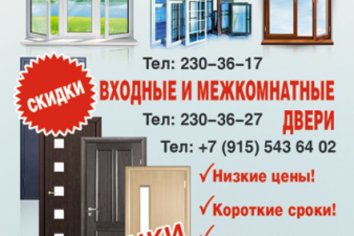 Дизайн-макет листовки компании по продаже дверей и окон.