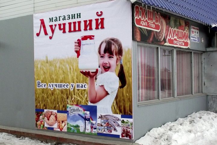 так как вход торговой точки был неприметным, по желанию заказчика сделал баннер сбоку перед пешеходным тратуаром.
