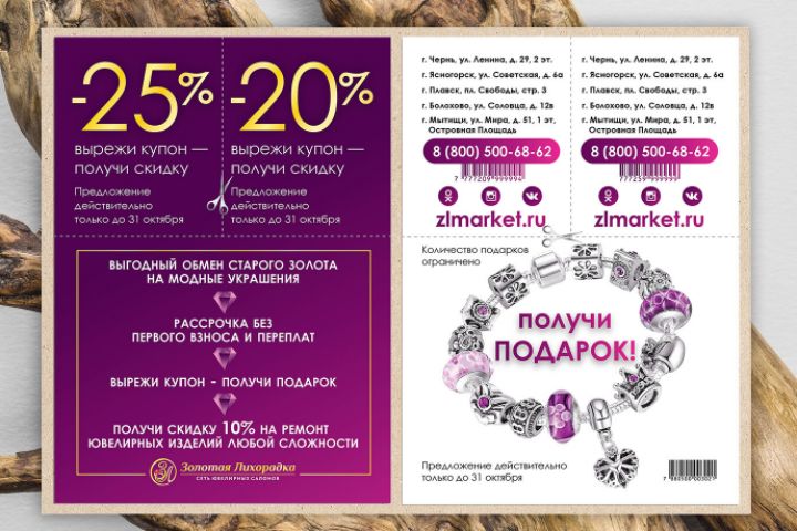 Листовка с купонами отрезными и штрихкодами, что-бы продавцы считывали каждую скидку