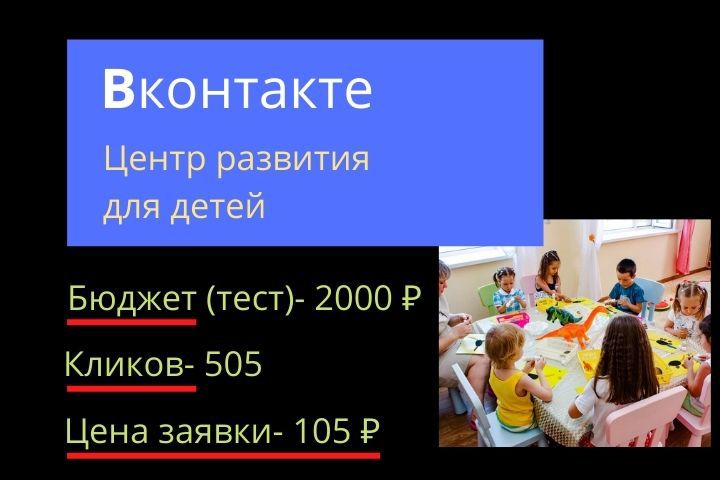 на аудиторию родителей 7 и 12 лет + созданы кампании с таргетингом на посетителей групп развивающих центов + настроена реклама по ключевым словам.