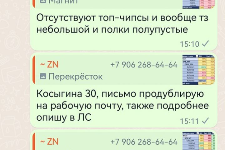 Переписка в WhatsApp по работе на должности торговый агент.
