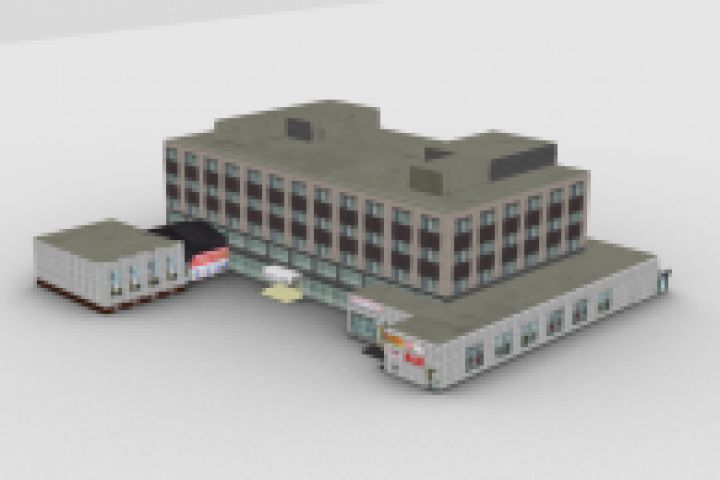 Низкополигональные здания по карте г.Серпухов: Дом Быта и прилегающие пристройки.