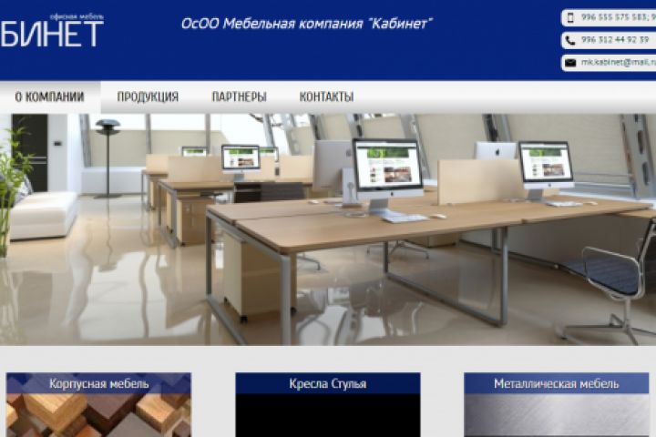 Сайт для мебельной компании "Кабинет". Написан на своём авторском движке. В заказ вошли: ТЗ, дизайн-макет, верстка, система управления сайтом, программная часть, разработка фирменного стиля.