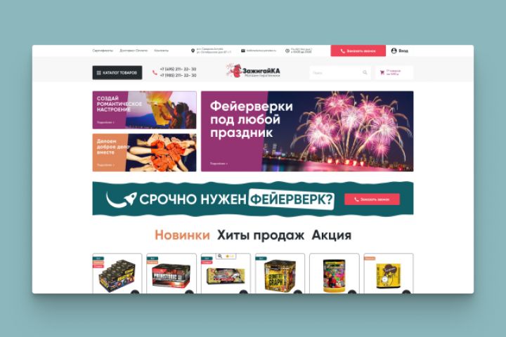 Ре-дизайн интернет-магазина фейерверков "Зажигайка". Переработан фирменный стиль и полностью логика сайта
