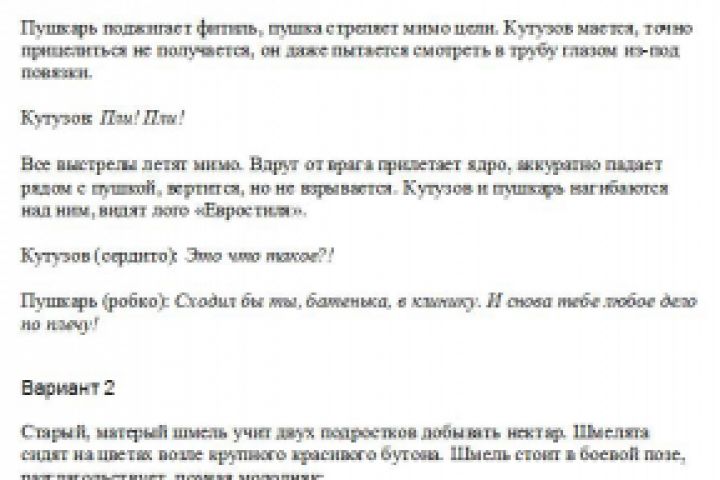 Сценарии роликов для клиники микрохирургии глаза "Евростиль"