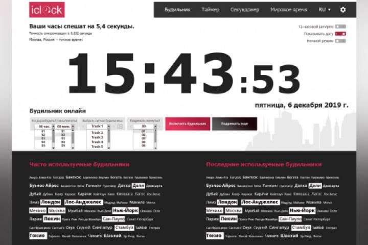 Разработка концепции дизайна Онлайн будильника с функционалом настройки формата даты и времени и выбора музыкальных треков.
