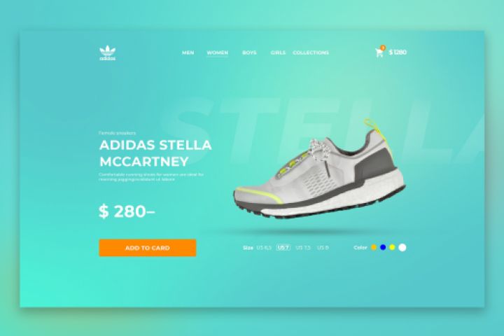 Дизайн экрана представления продукта для магазина спортивной обуви.