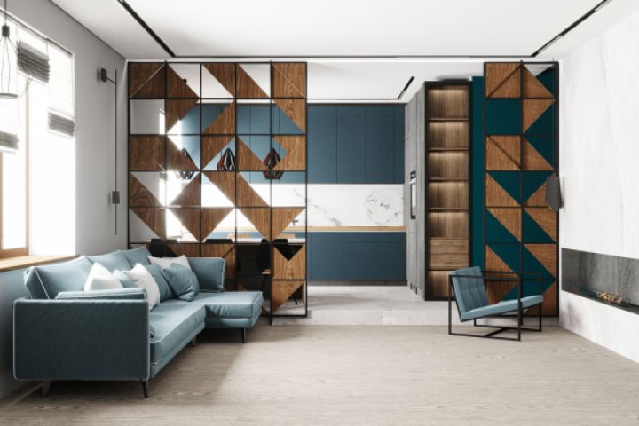 Концептуальный проект "Норвежский фьорд" выполнен в стиле минимализм. Сочетание текстур натурального камня и оттенков синего цвета отражает концепцию. Проект создавался для молодой креативной семьи.