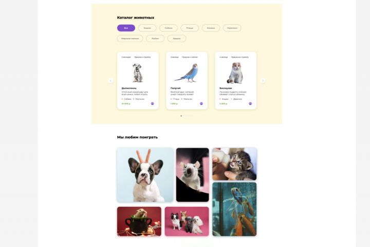 Создание дизайна для сайта по продаже домашних животных