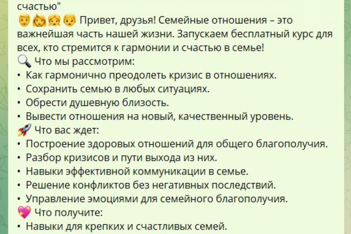 Реклама для психолога, который приглашает на свой без оплатный курс по семейным отношениям.