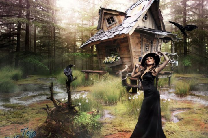 Картинка "Избушка ведьмы" совмещает в себе 7 разных фотографий с добавлением нескольких эффектов