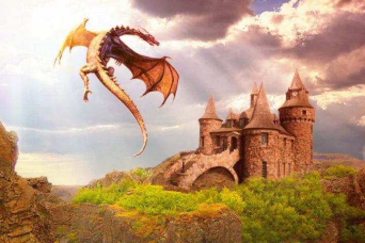 Картинка "Дракон и замок" совмещает в себе 5 разных фотографий, плюс добавлены некоторые эффекты.