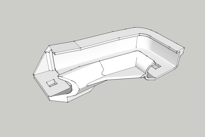 Угловой элемент для соединения направляющих профилей автоматических гаражных ворот ранних бюджетных модификаций. Создание мастер модели, проектирование прессформы, отработка технологии, подбор сырья, испытания и серийное производства запчасти.