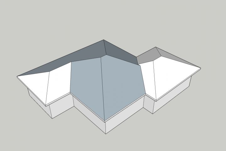 В процессе строительства коттеджа заказчиком было допущено серьезное отклонение от первоначального проекта. С учетом измениний была переработана конструкция кровли, создана визуализация и сделан перерасчет материала.