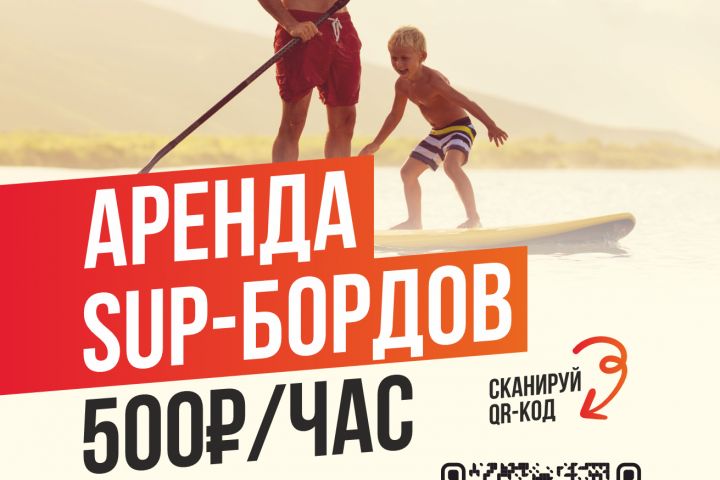 Листовка “Аренда SUP-бордов” предназначена для привлечения внимания к услуге аренды SUP-бордов.