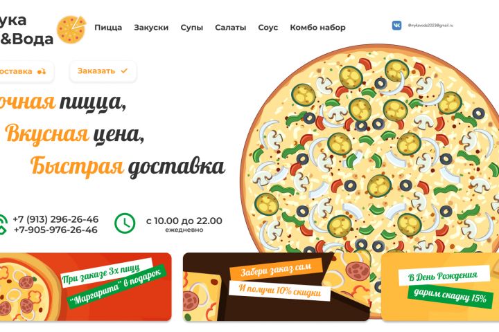 Сайт для заказа пиццы. Необходимо было сделать сайт для пиццерии. У заказчика есть группа в VK, но оформлять заказы, там не удобно. Нужен был сайт для сбора заявок.