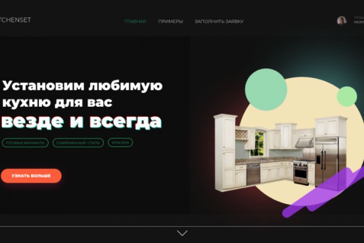Разработка дизайна первой страницы для кухонной гарнитуры