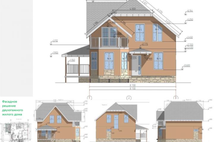 Фасадное решение индивидуального жилого дома ArchiCAD модель. Отделочные материалы и спецификации решений фасада по ТЗ заказчика.